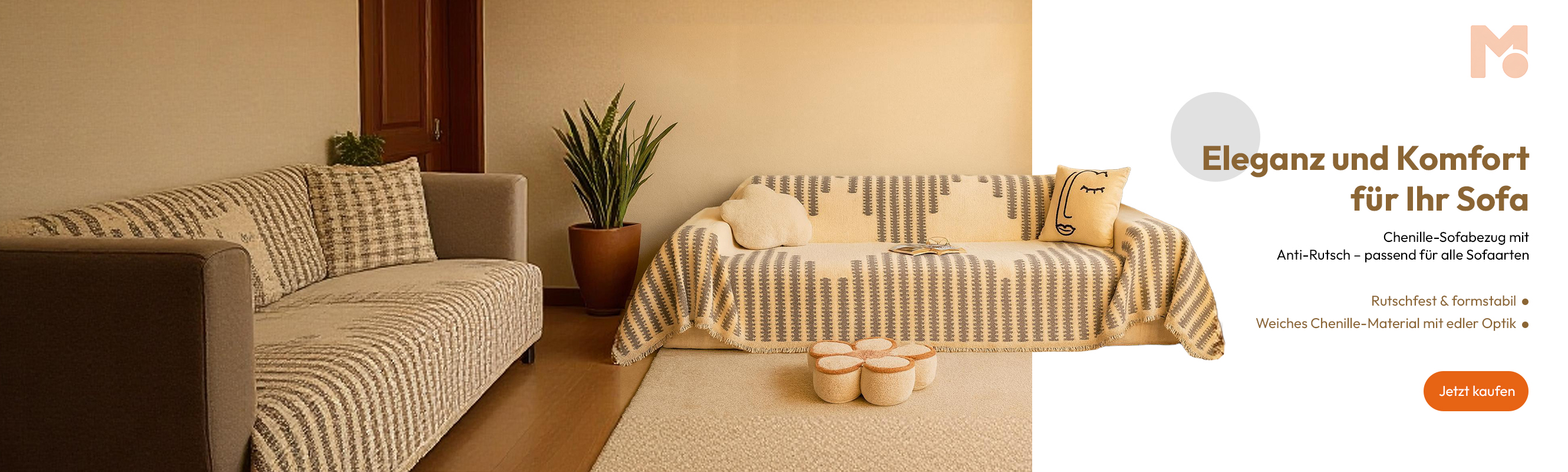 Eleganter Chenille Sofabezug, Anti-Rutsch, für alle Sofaarten geeignet