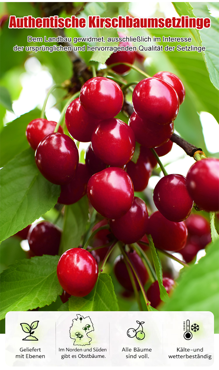 【Keine Früchte❓ 100% Geld zurück❗】4J XXL Regina Süßkirschbaum | Kräftige 2-jährige Setzlinge | Ernte bereits im ersten Jahr | Ideal für Balkon und Garten | Winterhart bis -20°C 🍒