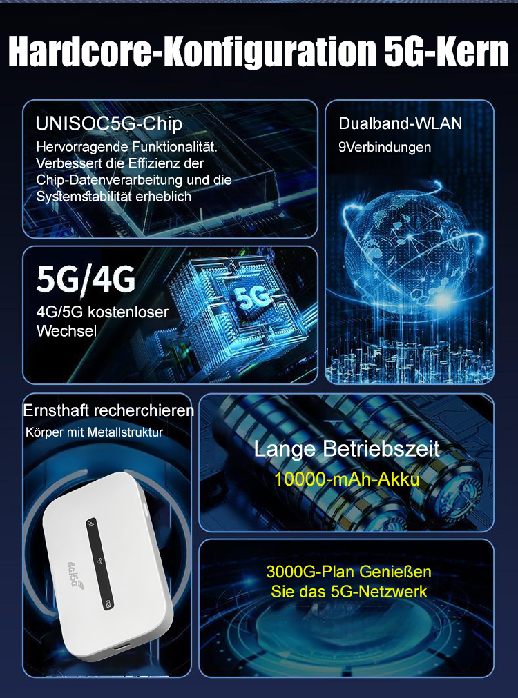 Unbegrenztes 5G-Highspeed-Portables WLAN - Lebenslang kostenloses Internet, Keine monatlichen Gebühren, Unbegrenztes Datenvolumen, ⏰50 % Rabatt für begrenzte Zeit, dreifache Rückerstattung bei Ineffektivität
