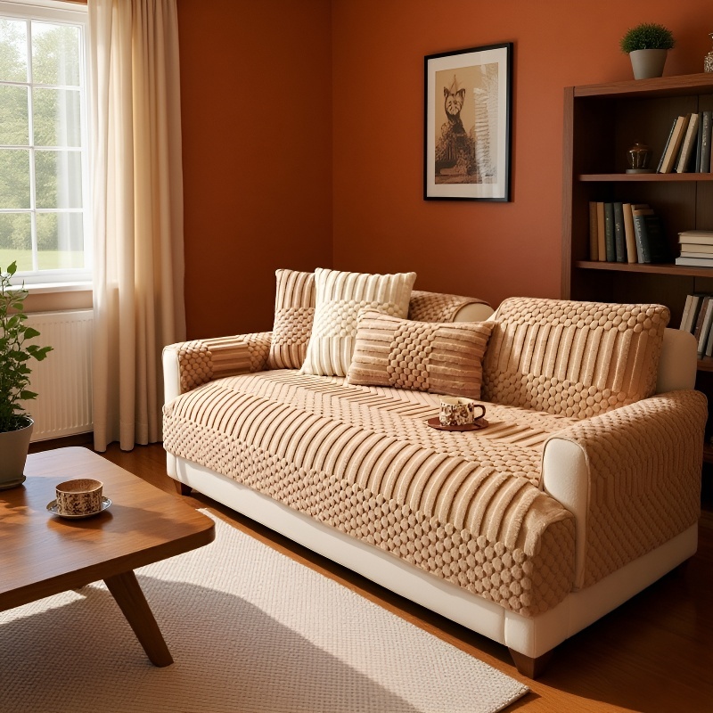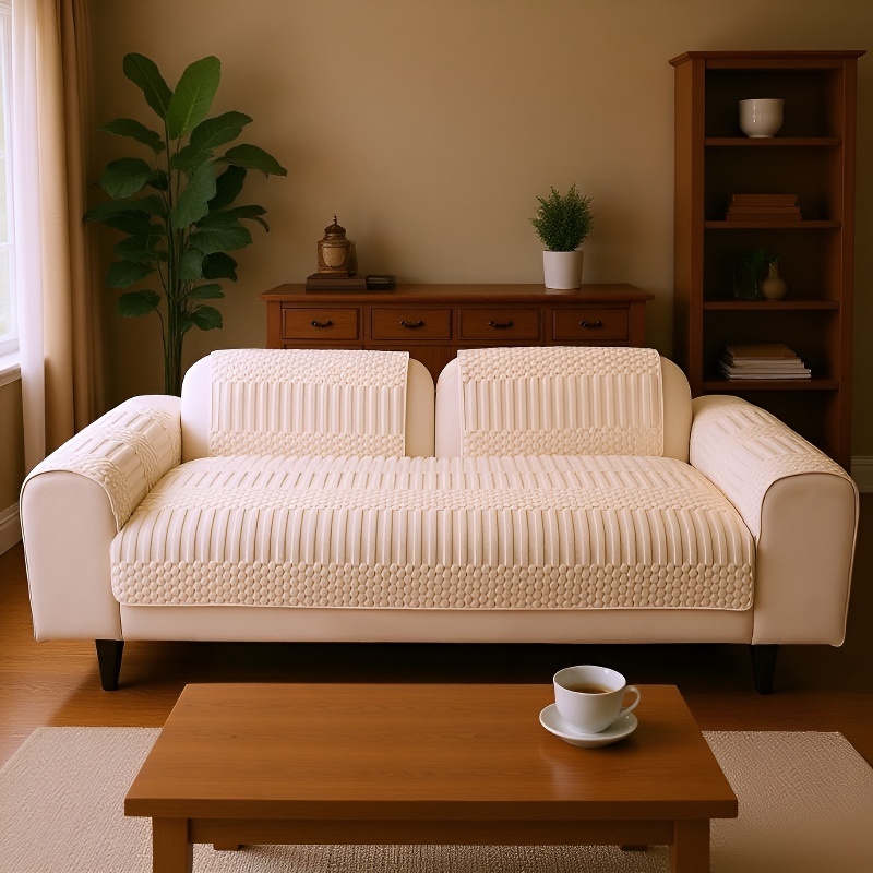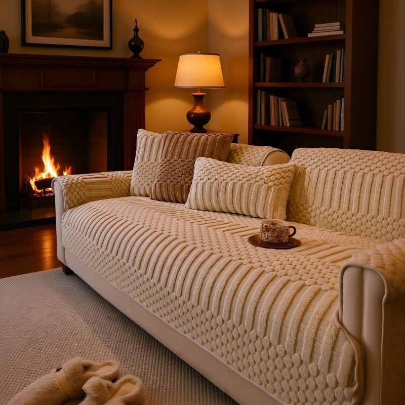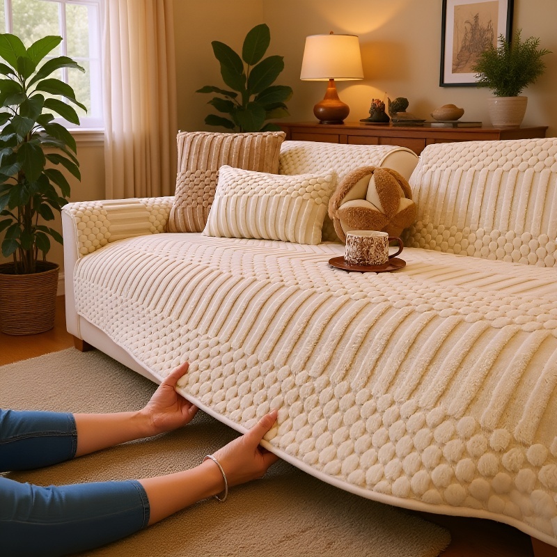 Rutschfester Sofabezug aus Leder mit Plüschpolster für Herbst und Winter